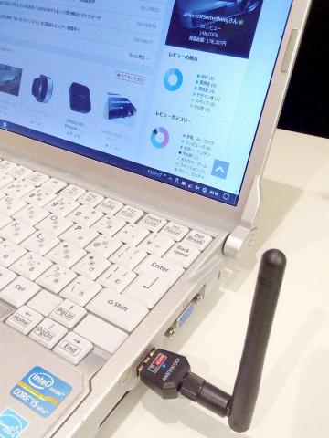 ノートPC(CF-N10)につけてみるとこんな感じです。それなりにアンテナが存在感を主張しています。