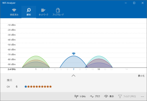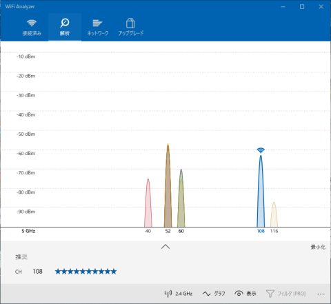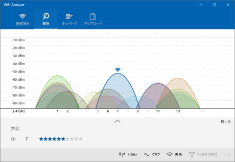 2.4G帯はこんな感じ。(a,acには非対応なので5GHz帯はなしです)