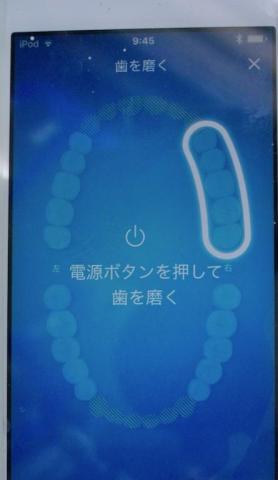 デフォルト設定の右奥から アプリの指示通りに磨きはじめます。