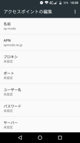 デフォルトで一通りの設定が入力されているので、自分の使っているSIMに合わせるだけ。
