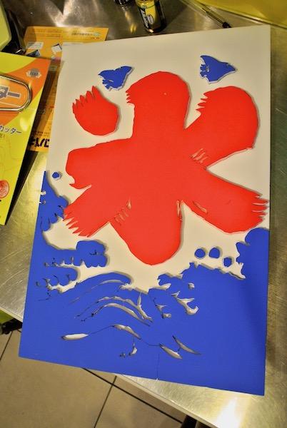 私は布製の旗を元にして、スチロール板を組み合わせて 看板を作りました。