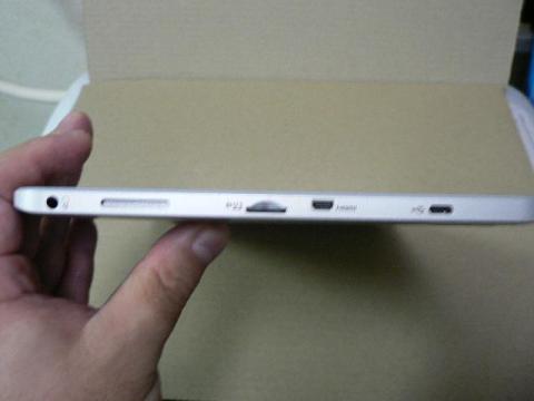 左側サイドにはスピーカー(左)、MicroSDカードスロット、HDMI端子、MicroUSB端子を配置