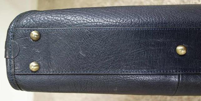 鞄を置いた時に底面を擦れから守る底鋲。両端に2点ずつ、中心に1点、合計5点付いている。