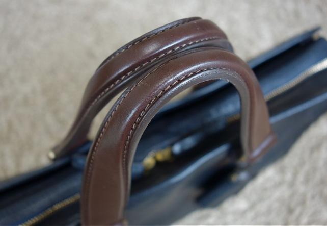 所々に使われている金具には、表面に繊細な筋を入れてマットな質感を出す加工(サーティナ仕上げ)が施されている。この鞄には、光輝くゴールドよりも柔らかなゴールドの光沢感が似合っている。金具の加飾方法1つ取ってみても意外に馬鹿にならないものだ。