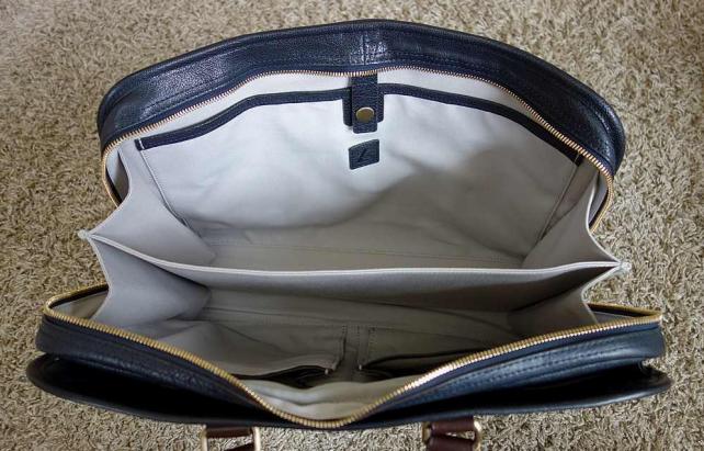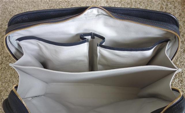 マチは最大で12cmほど。マチの底までファスナーがあるフルオープンタイプ。