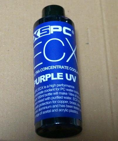 このPCのチューブは完全な透過ではなく半透明なので水を抜いた↑の写真だと結構白く写っている。ある程度色が濃い方がよさそう。今回は清掃中に400ml程度なのが判っていたので様子見で1/3程度使用。これでも少し少ないくらいだが思ったより色が濃そうなので。