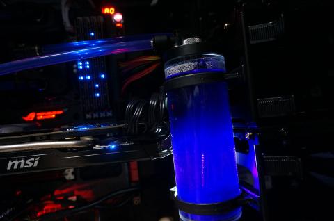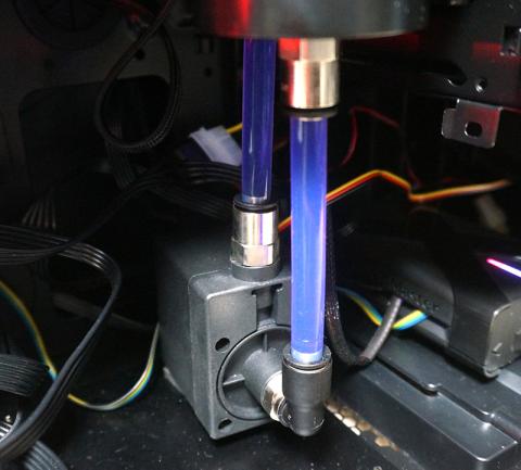 リザーバーはそのままだと黒に近いレベルになってしまうので、裏側に白色LEDをぶら下げてみたらいい感じに怪しく光った。今度ちゃんとLED用意しよう。