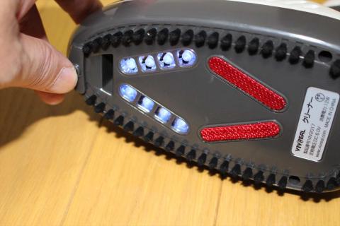 手で押さえているところに突起があり、そちらが押さえられたら、UVランプが点灯します。