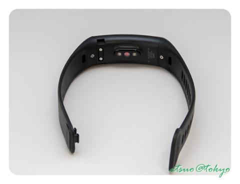 表示盤の裏には脈拍用のセンサーと充電用の端子が見えます。