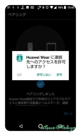 利用可能なデバイスに表示されている「HUAWEI BAND 2-xxx」をタップすると、ペアリング画面に移ります。