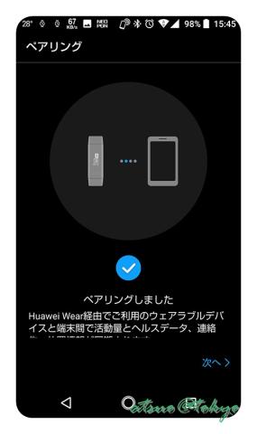 活動量計の画面にもペアリングの表示がされるので、タッチセンサーをタップします。