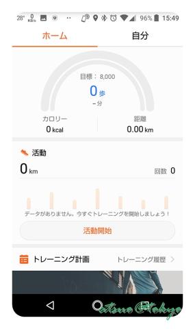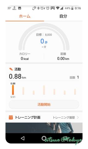 スマホと接続する事でデータが同期され、スマホのアプリケーションのホーム画面にある「活動」に表示されます。