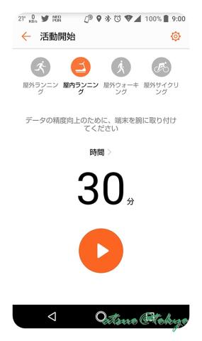 スマホから開始する場合は、ホーム画面の「活動開始」をタップし、続いて表示される画面から行いたいトレーニングを選びます。