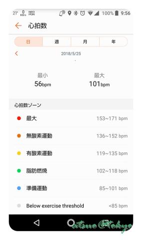 画面を下にスクロールさせると心拍数毎にどの様な運動かの指標があります。