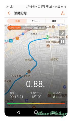 今回神楽坂に散歩へ行った時に記録してみました(散歩なので走っておらず、ゆっくりウォーキングです(^^; )。