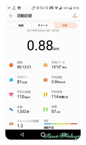 上部の「軌跡」「チャート」「詳細」をタップする事で、それぞれの内容を見られます。