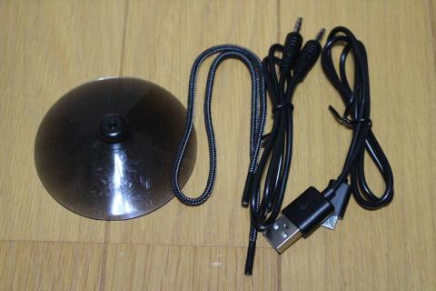付属品は、吸盤、ストラップ、オーディオケーブル、充電用のケーブルとなっています。