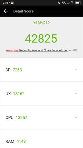 antutuベンチの結果です。ハイスペックとは申しません。最近のスマートフォンの中では、ちょうどミドルレンジになると思います。