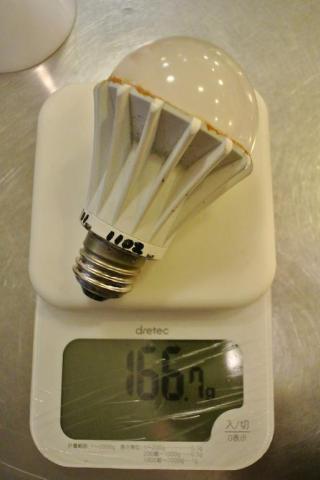 手持ちのオリオン社製のLED電球の実測重量は約166gと、3倍以上の差がありました。