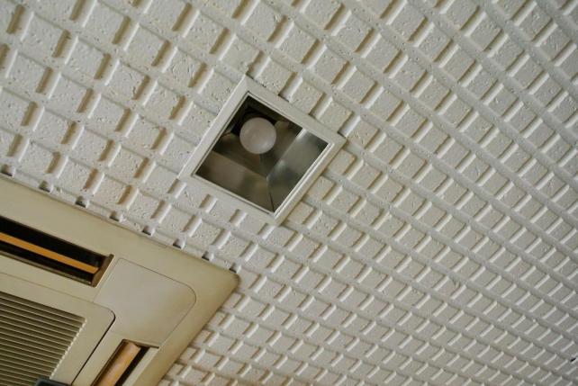 写真中央、埋込み型エアコンの手前にある照明器具に納まるのが、このオーム電機社製LED電球。