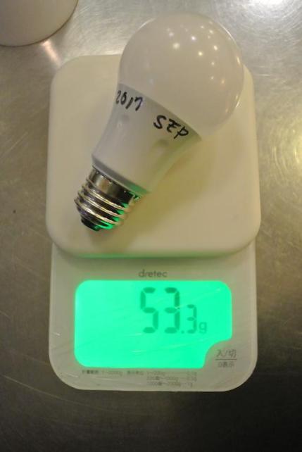 公称50g 実測53g と これまでのLED電球とは比較にならない軽量化が果たされています。