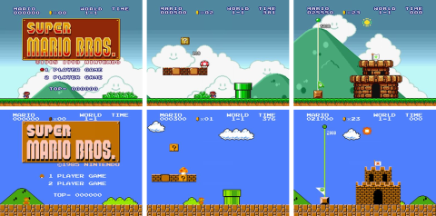 『スーパーマリオブラザーズ』の画像比較(上が本作、下がオリジナル版)