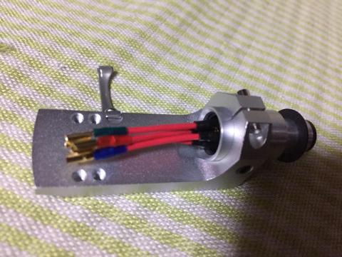 これは随分前に中古で買った品で、購入時点でヘッドシェルに装着済みでした。正直言って他で見たことない外観のヘッドシェルであり、素性はよく判らないのですが、肉厚はやや薄めの軽量型のものです。恐らく単体の重量は10g以下ではないかと思います。