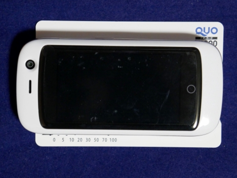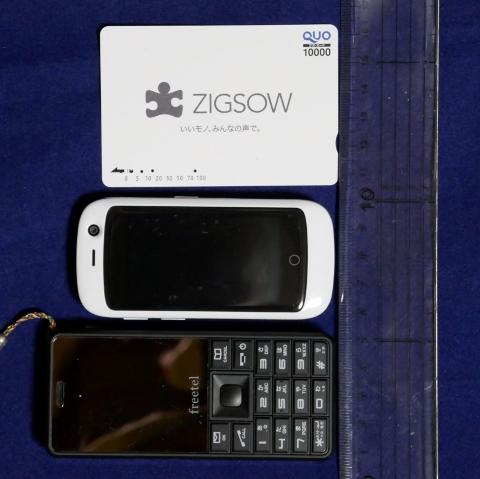 上にQUOカード、下にFreetel「Simple」を並べると