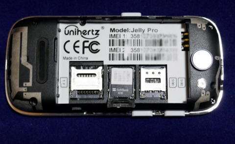 バッテリーの下にSIMカードソケット