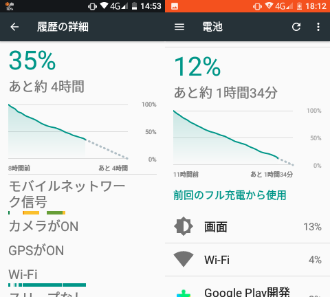 約8時間で残り35% 約11時間半で残り12%