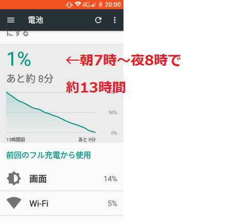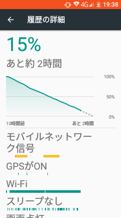 約13時間で残り15%(約2時間)しか残っていません。