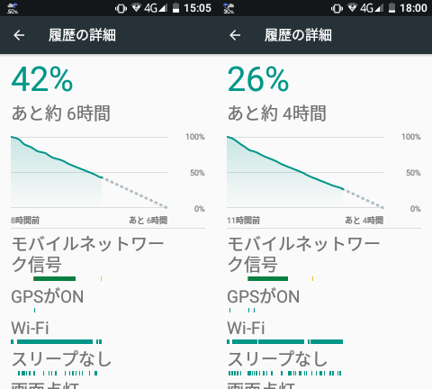 普段使いの初日、朝7時前に充電ケーブルを外し、バッテリーがどれぐらい持つのか?