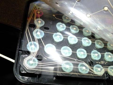 キーボードの根もとで配線の被覆が経年劣化で硬化し破れその結果、