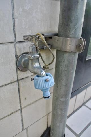 水道栓に繋ぐ場合は、ホースをそのままねじ込んでも良いのですが、水圧が高まりますので、不意に外れてしまう可能性が残ります。