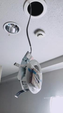 既存の設備の改善で行けないかと思い、天井を見ると本来の階段の踊り場を照らすダウンライトがありました
