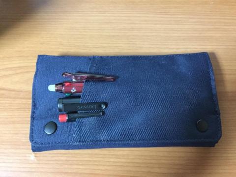 こちらのペンケースを使うとスラックスのポケットには入らなくなってもPCに固定できるかな