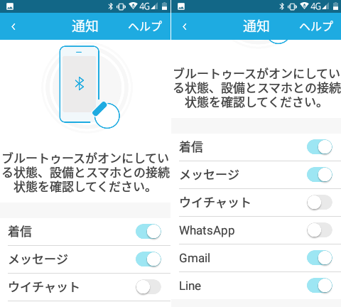 ・スマホと連動して、電話やMail・Lineなどの着信がバイブや表示で