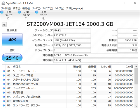 個人的にはシーゲートのHDDは故障しやすいというイメージがあるので、不安ではあるのですが、高耐久ということなので信用して使っていこうと考えています。