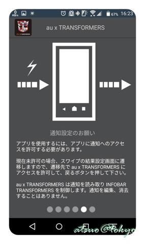 「au x TRANSFORMERS」の通知を許可してやり、前の画面に戻ります。