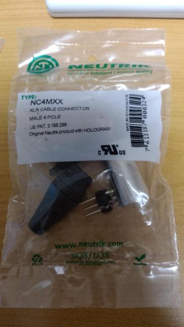 今回購入した製品は4ピンのXLR(キャノン)コネクタのオスとなります。