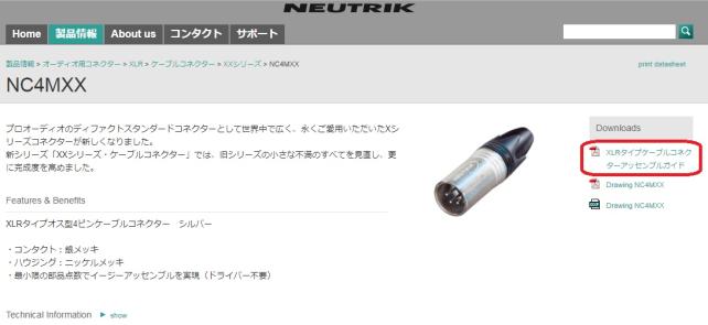 『XLRタイプケーブルコネクターアッセンブルガイド』というpdfファイルがありますのでそちらをDLしてご覧下さい。