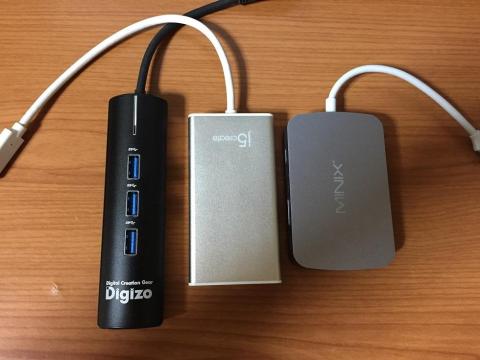 中央:J5Create JCA374 USB3.0×2+LAN+HDMI