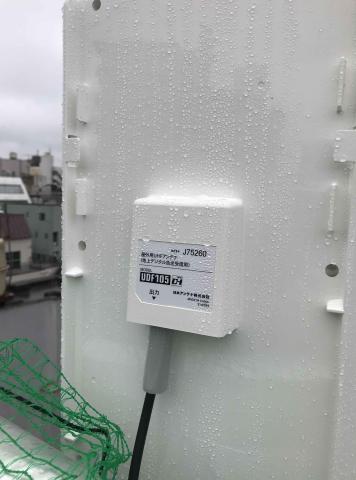 取り付けは簡単・・・ベランダの手すりに東京ならスカイツリーの方向に取り付けるだけ、いたって適当、真正面でなくても測定器は最大ゲインで振り切りました・・・!(^^)!