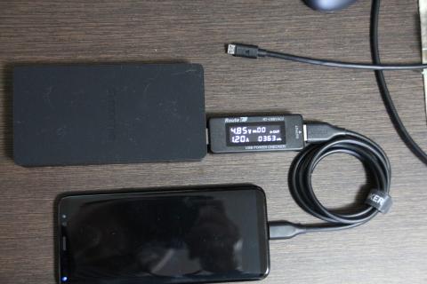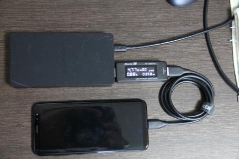 どこにも書いていませんでしたが、USB出力は2.0A程度は出力できそうですが、モバイルバッテリー自体に充電している場合、USB出力は0.8A程度に出力が制限されるようです。