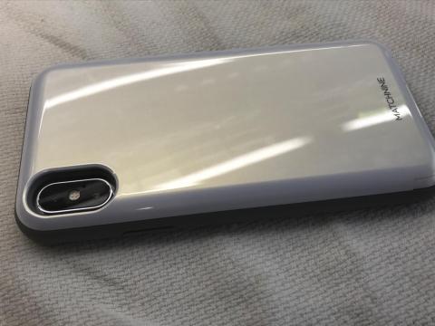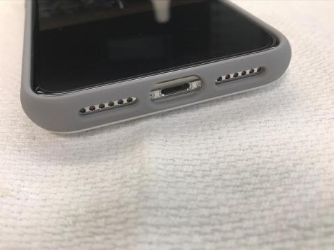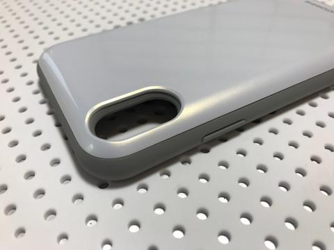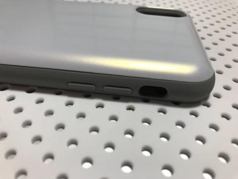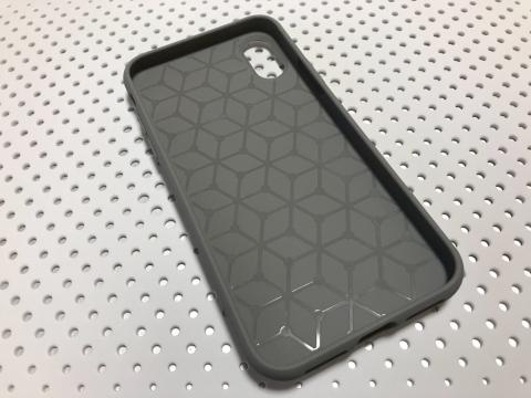 iPhoneXに接する部分はグレーの肉厚ポリカーボネート素材となっています。