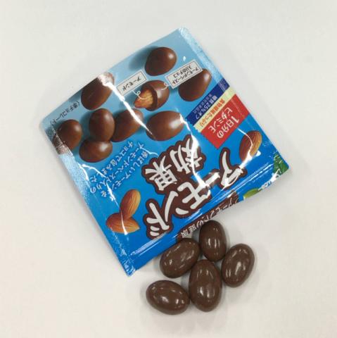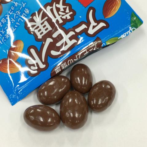 アーモンドペースト練りこんだチョコレート生地で、ローストアーモンドをコートした、香ばしいおいしさのアーモンドチョコ。