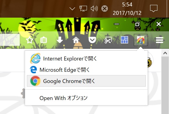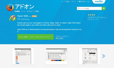 機能としては、現在開いているページを、Internet Explorer、Chrome、Safari、Opera など、他のブラウザで簡単に開けるようなメニューが追加されます。