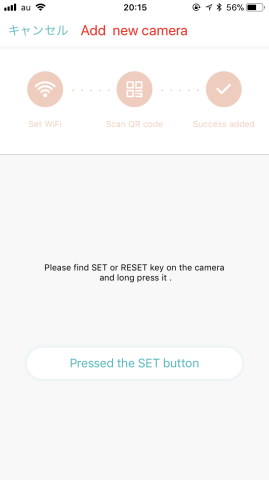アプリの「Pressed the SET button」をタップします。