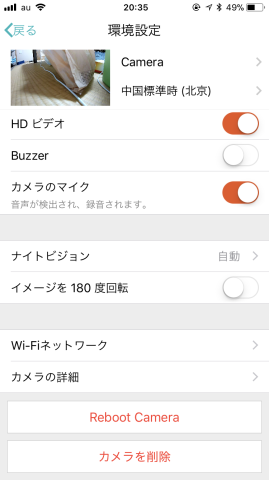 これでリアルタイムでカメラ映像を確認することができます。