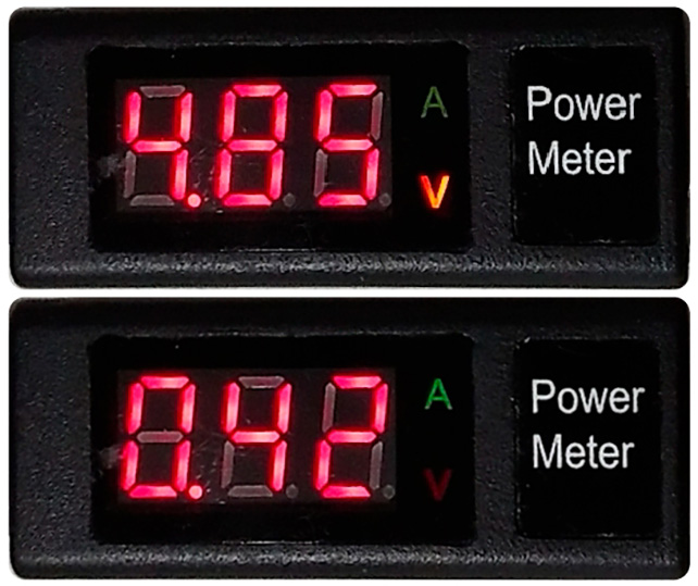 電流/電圧の表示は、赤で大きく見やすくできています。